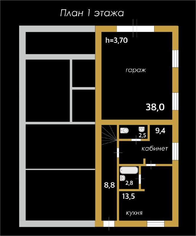 ЖИЛАЯ - 193,2м² (5 комнат, кухня, прихожая, ванная комната, санузел, рабочее место или место для хранения), высота потолков 2,8 м.