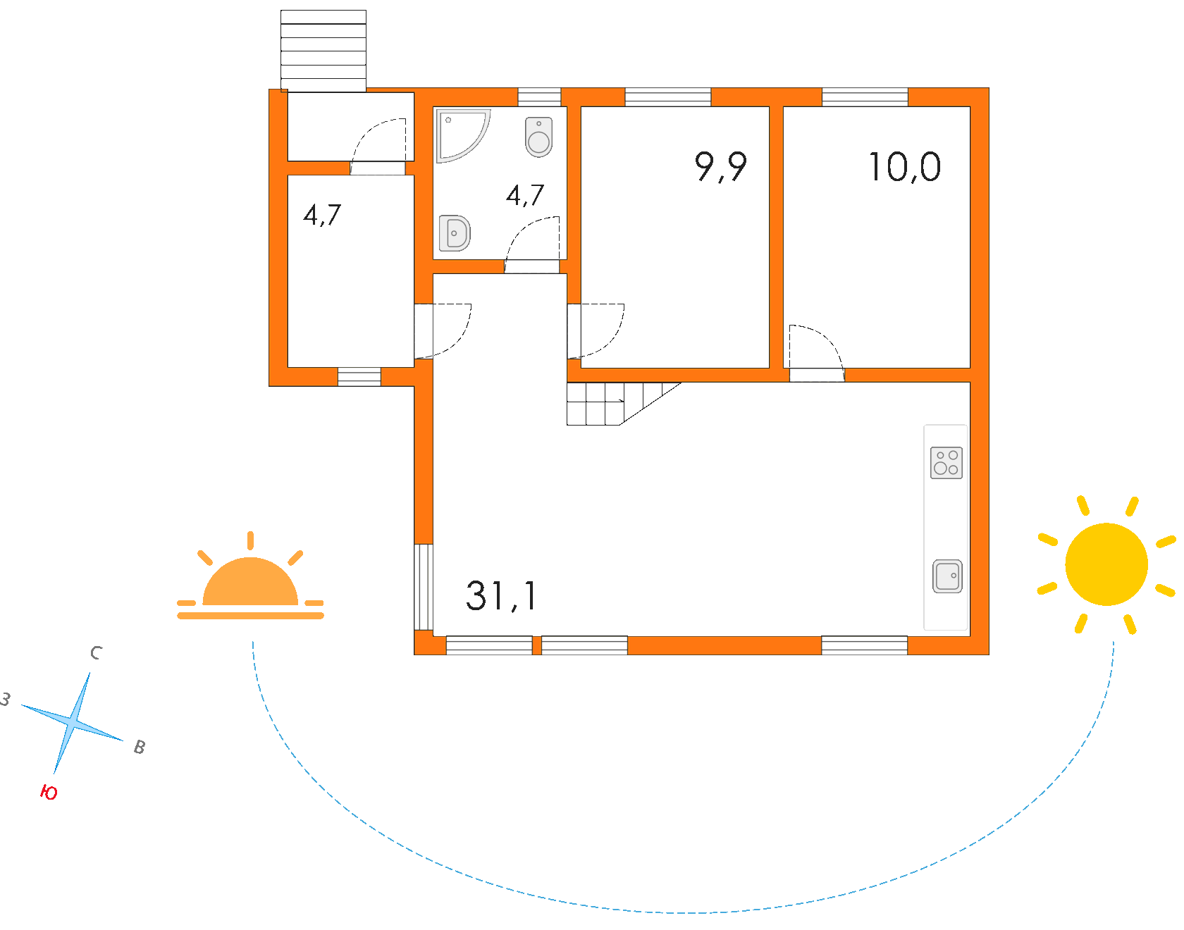 Остановка общественного транспорта расположена в 9-ти минутах ходьбы пешком.